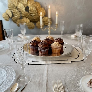 This elegant footed handmade placemat charger plate is designed to add a refined and luxurious touch to your table settings. Featuring a decorative brass frame with delicate grape motifs, raised sculptural legs and a reflective mirror surface, this piece creates a sophisticated base for dinner plates, desserts or decorative presentations. Its timeless design enhances the beauty of your dining table and helps create an impressive atmosphere for your guests. Whether used for everyday elegance or special occasions, this charger plate instantly elevates the style of your table.