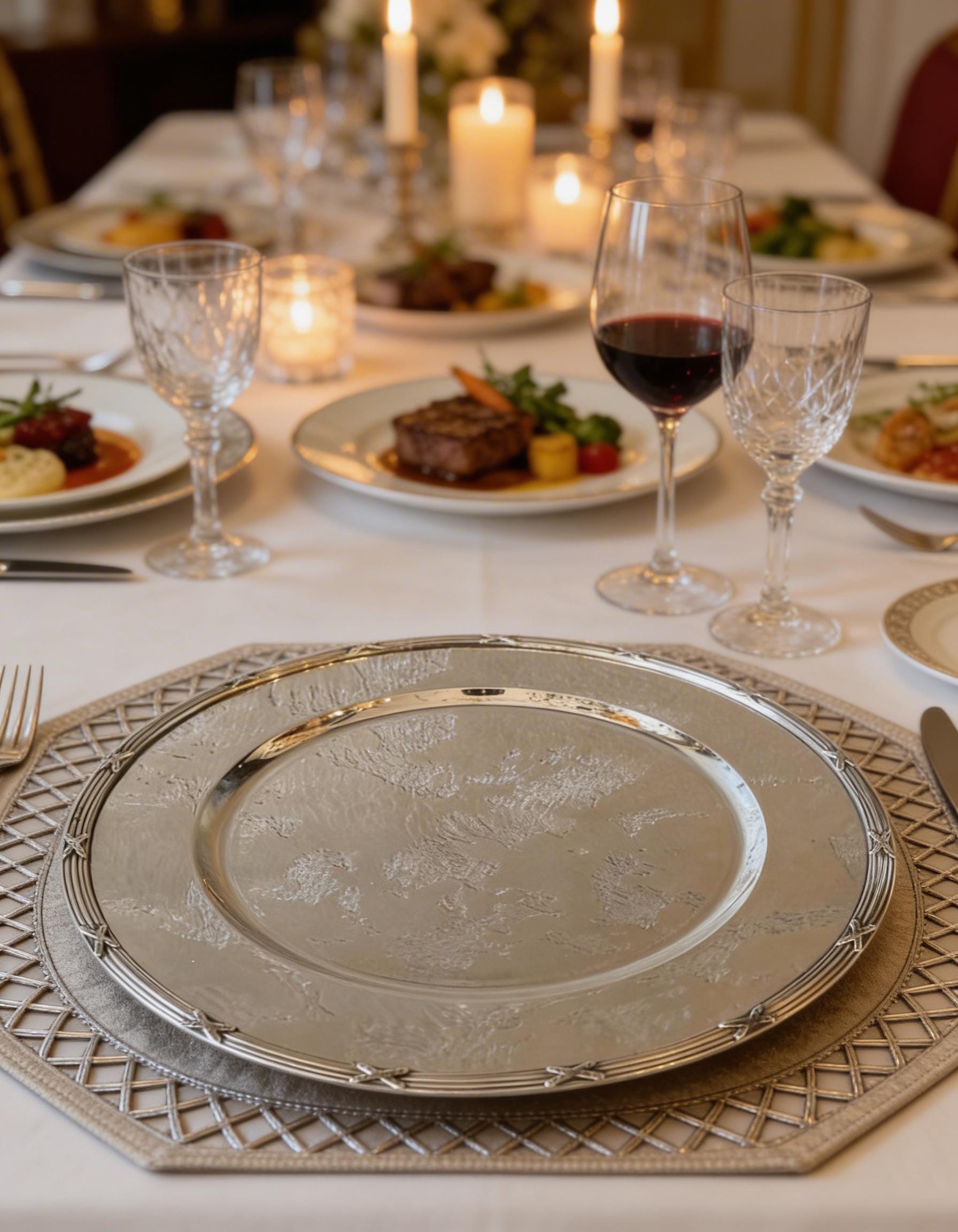 Ideal for use as a dinner plate charger, decorative base, or elegant table layer.