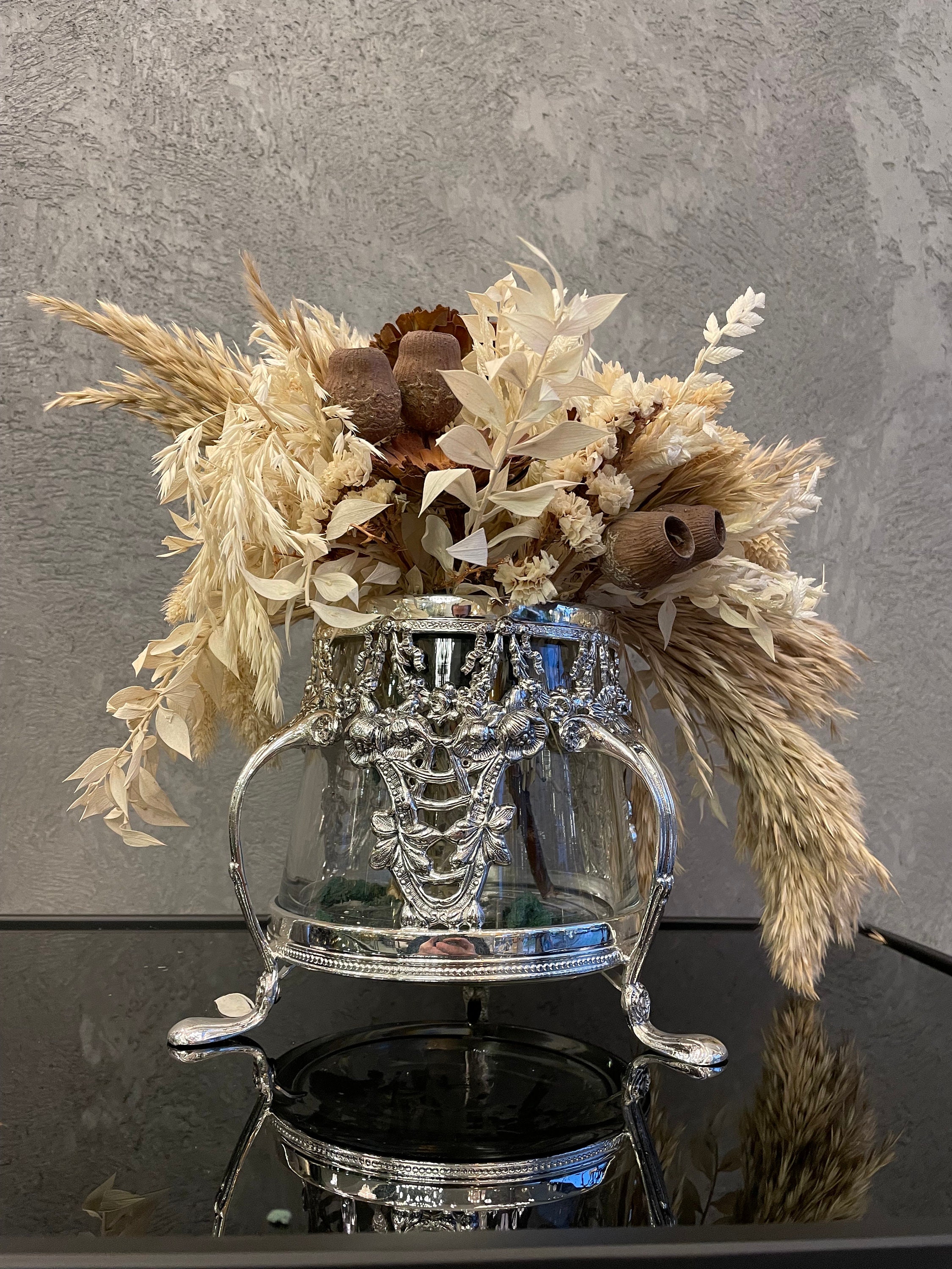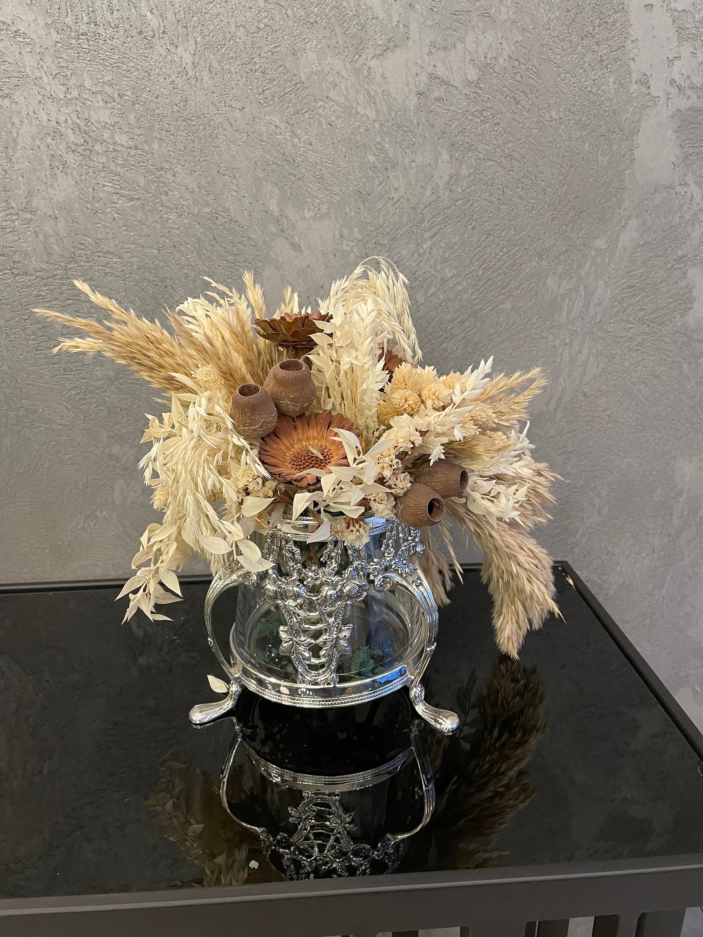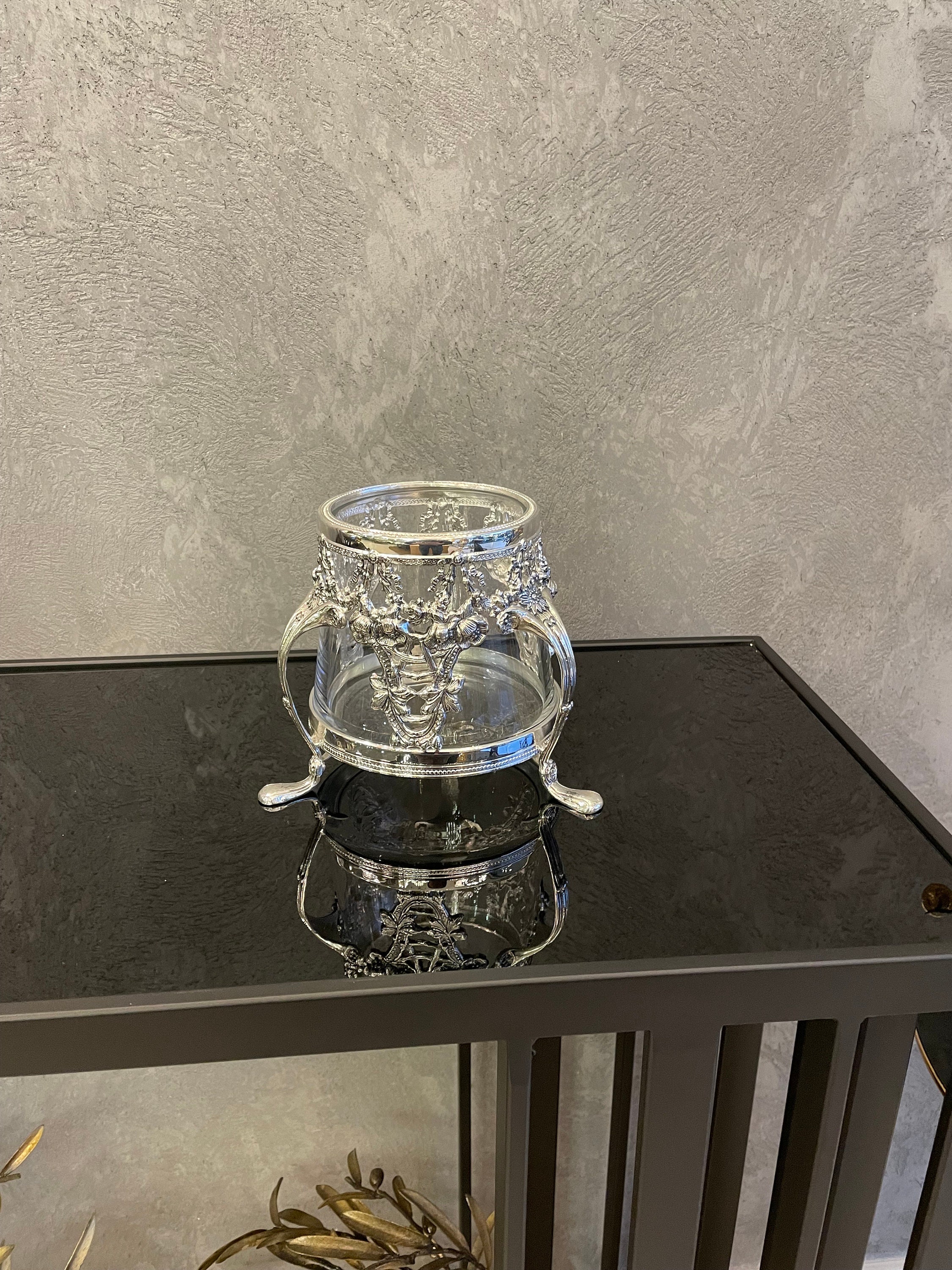 Our handmade silver plated flower pot that I produced using brass material.