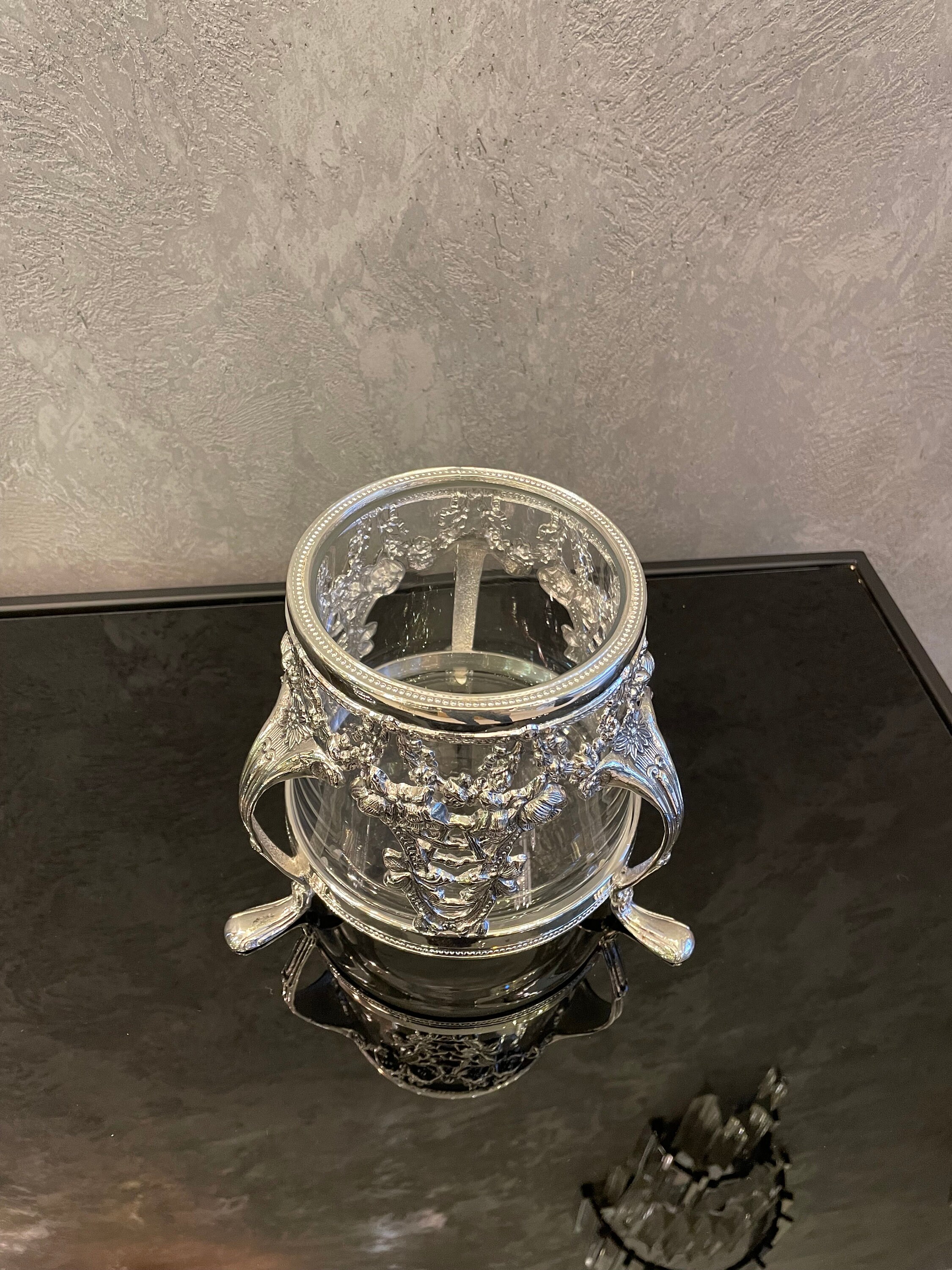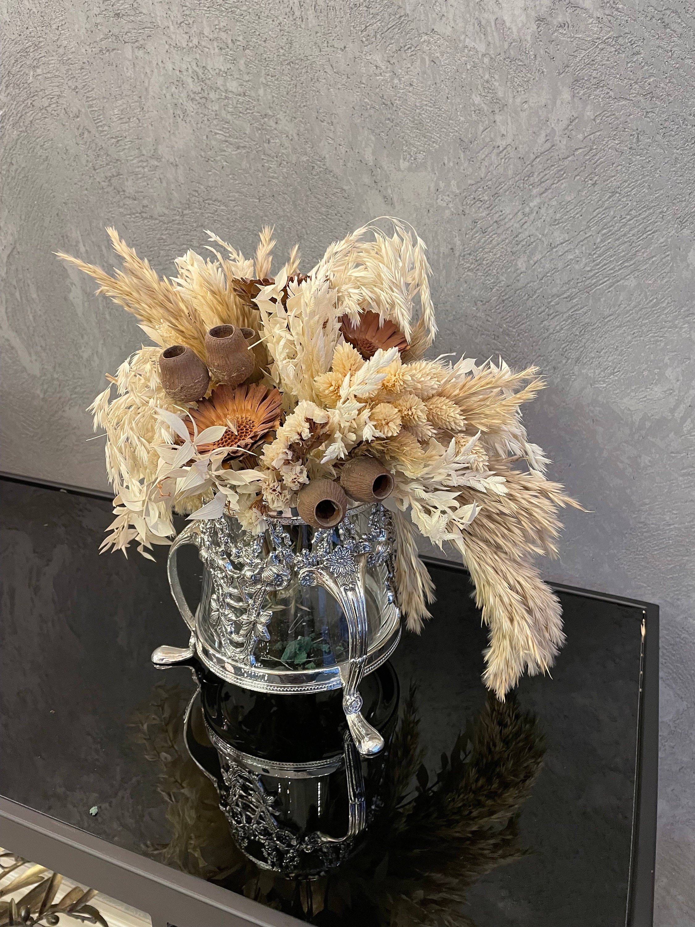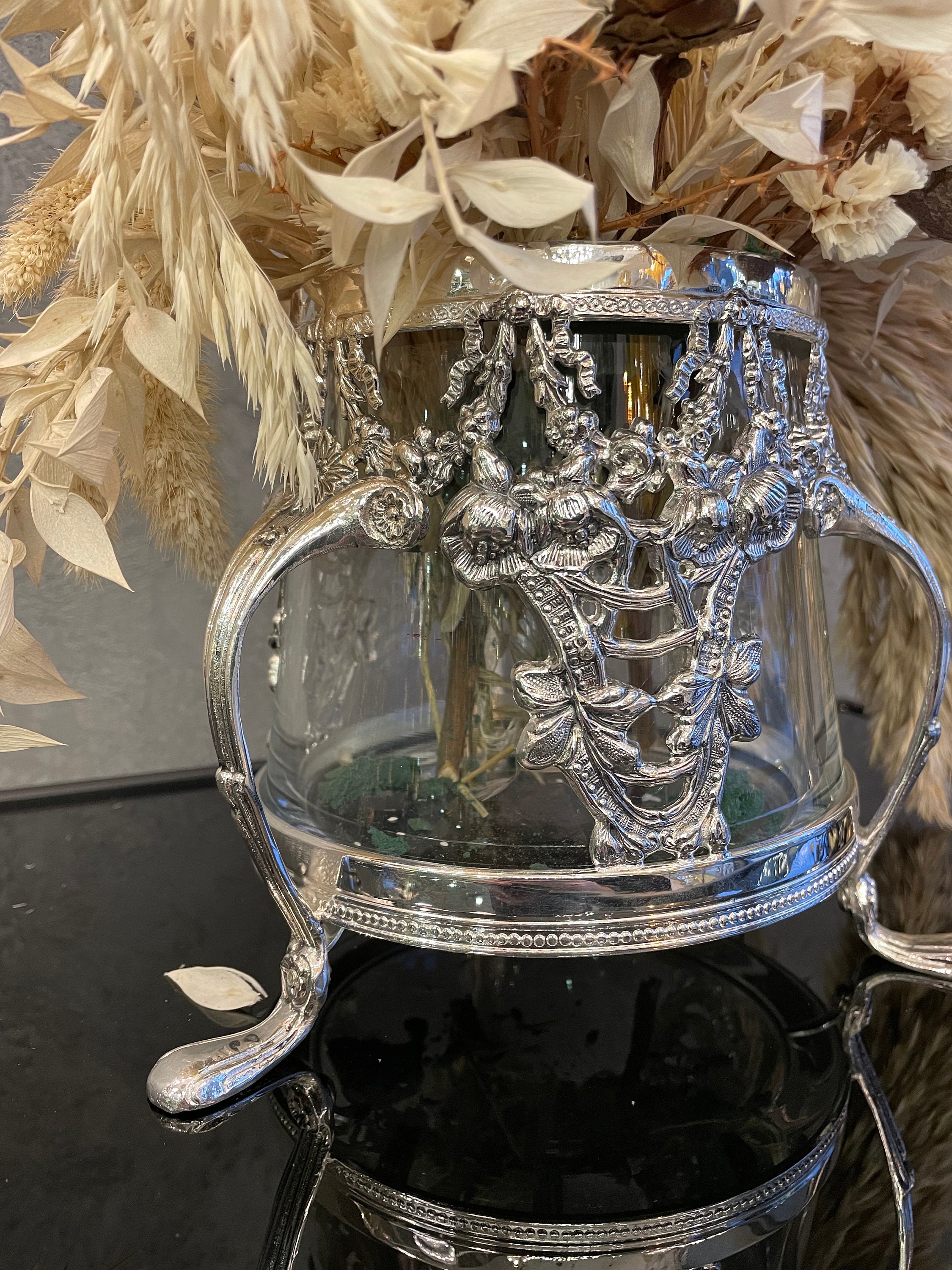 Our handmade silver plated flower pot that I produced using brass material.