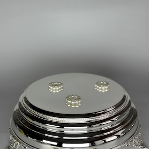 A completely handmade silver color wedding cake stand that I produced for you, our valued customers, using high quality brass materials in a small workshop.