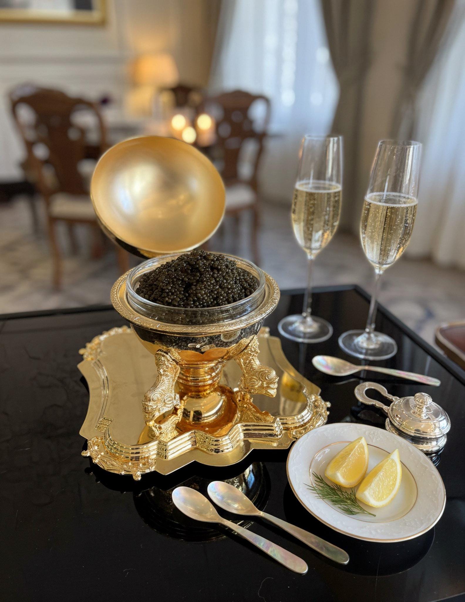 Silver and Gold plated stand where you can present your caviar, butter, honey and similar products, Christmas Gift