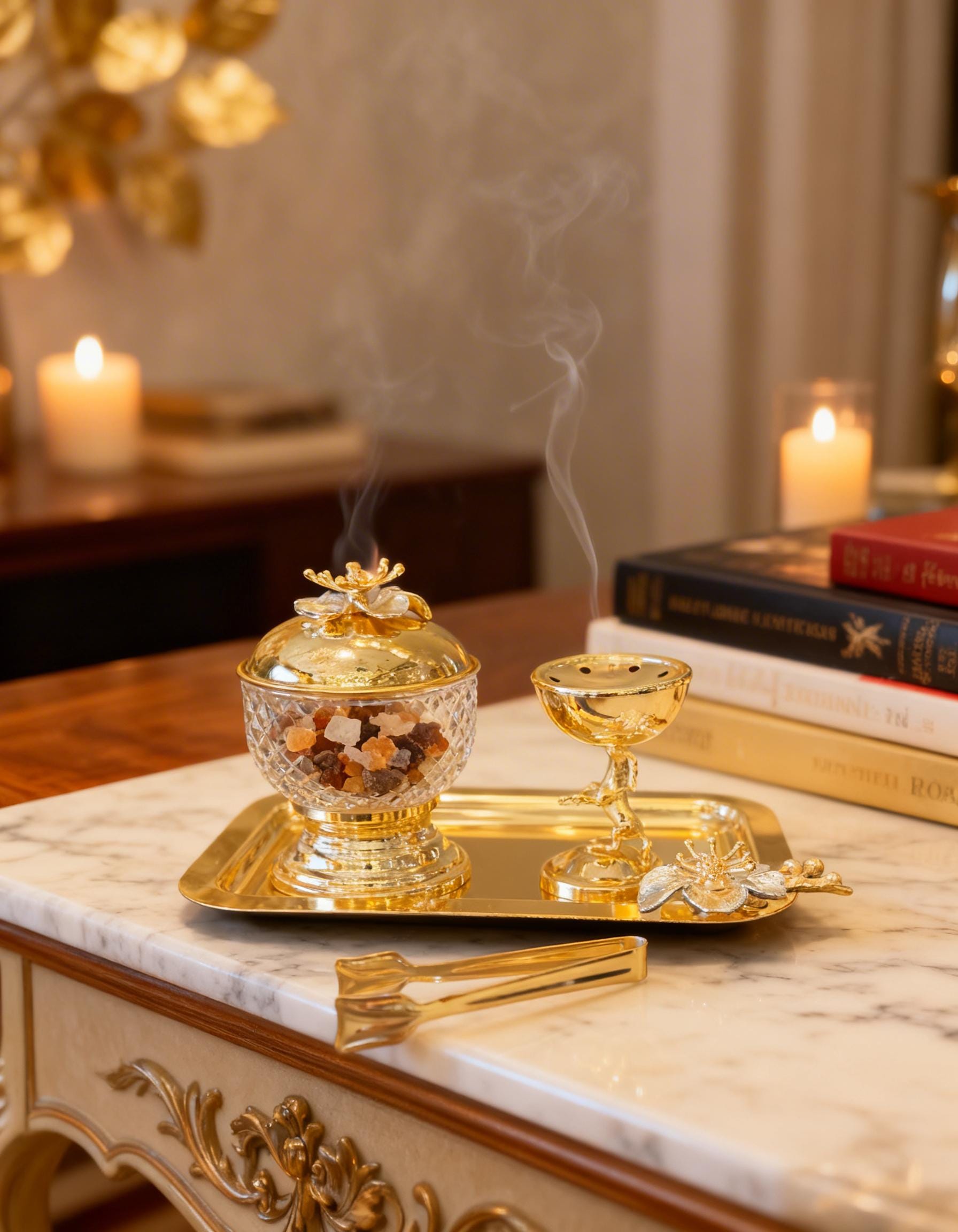 Brass Horse Incense Holder Set Gold Zen Aromatherapy Gift with Tray,Tong and Bowl