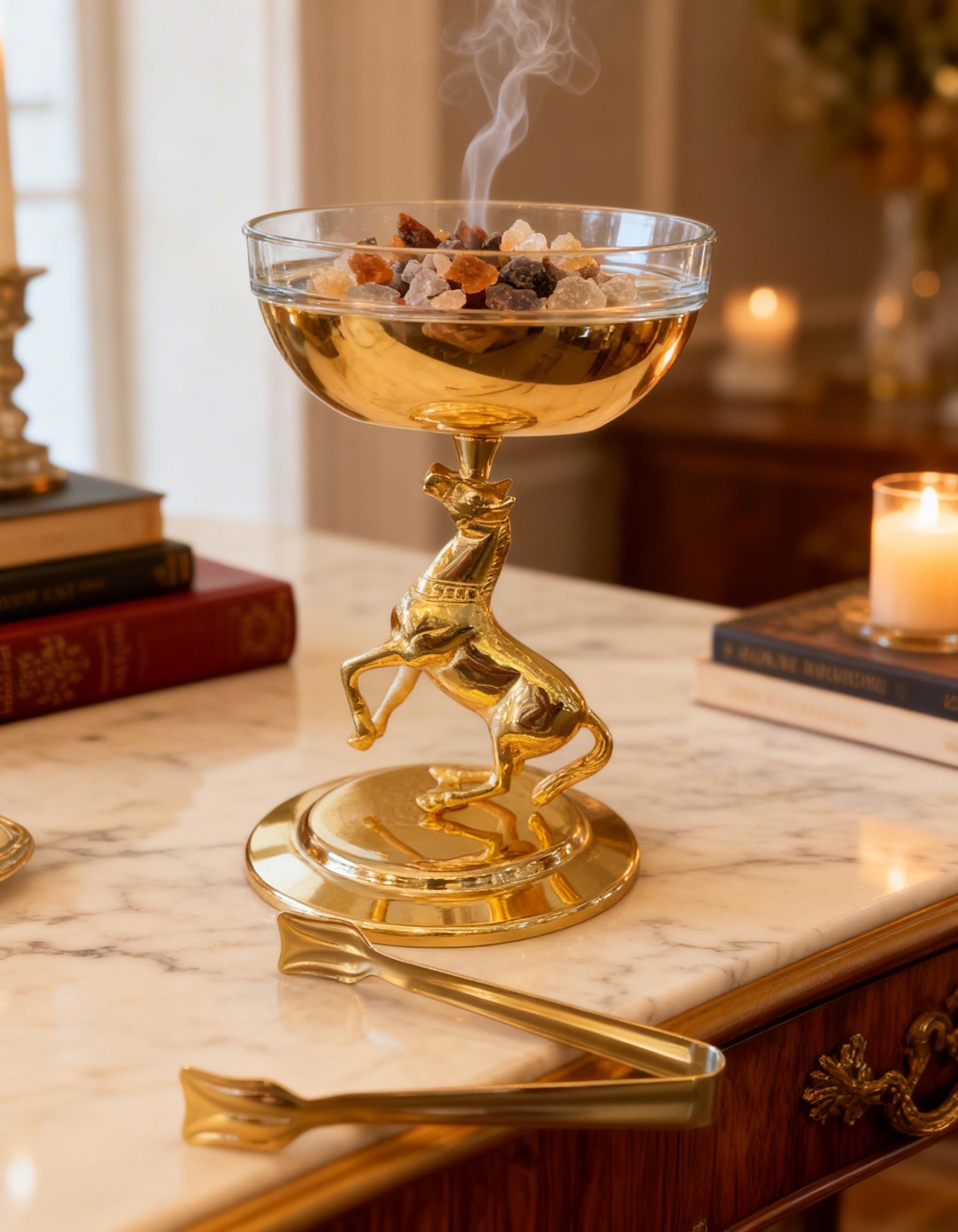 Gold Incense Holder Brass Horse Spiritual Home Gift Meditation Set