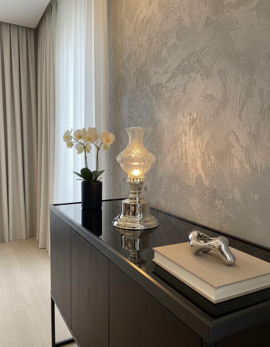 Available in gold and silver, crafted from premium brass with a clear glass chimney.