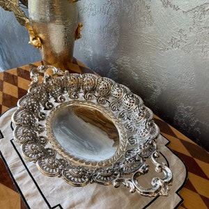 Glass Sugar Bowl Brass Fruit Stand Silver Round Handmade Dish