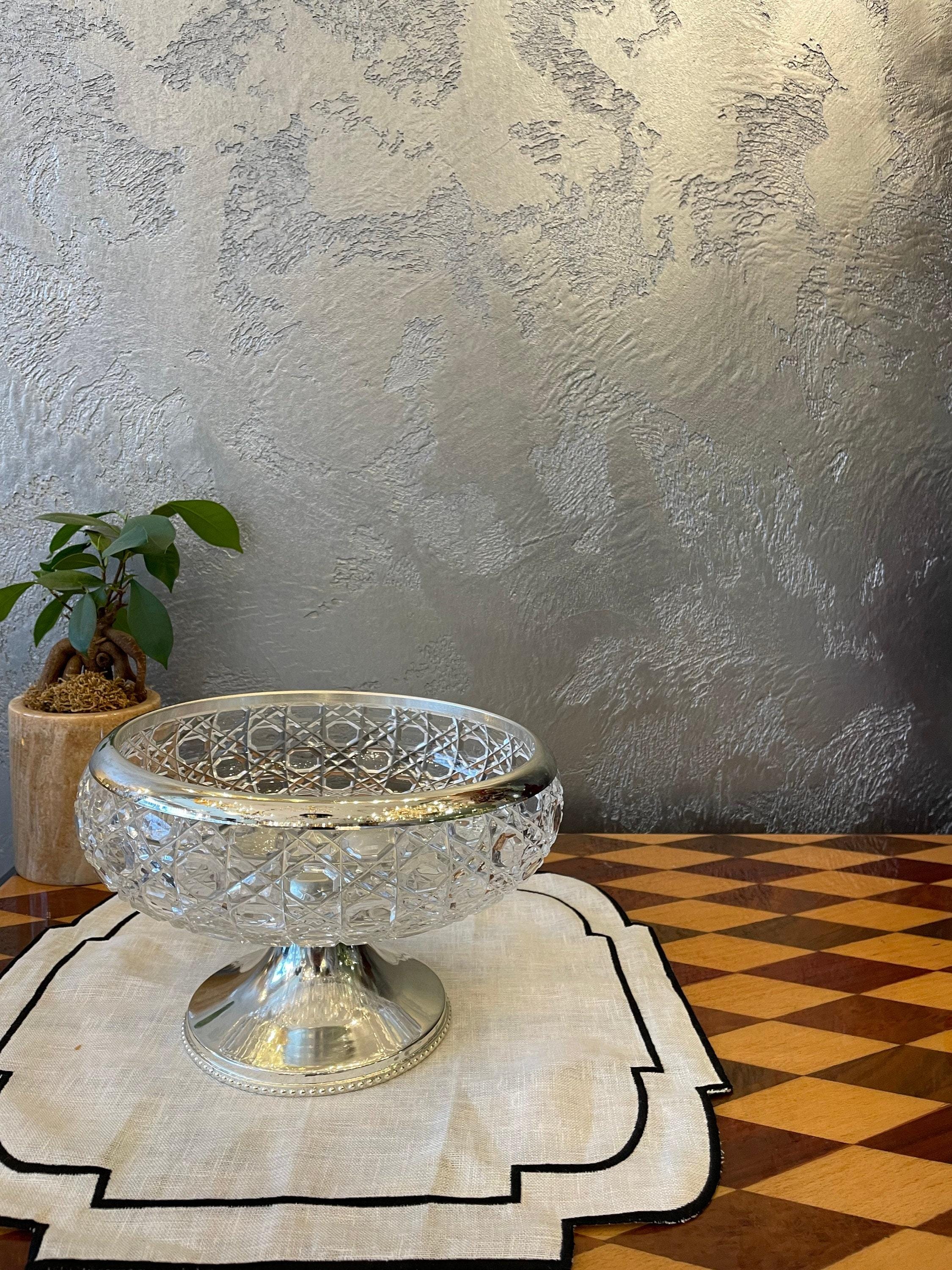 glass fruit bowl, brass footed bowl, handmade serving dish, gold silver centerpiece, round glass bowl, thanksgiving table decor, artisan brassware, dessert serving bowl, wedding fruit bowl, luxury home decor, elegant handmade bowl, cookie serving bowl, crystal glass centerpiece