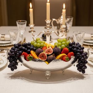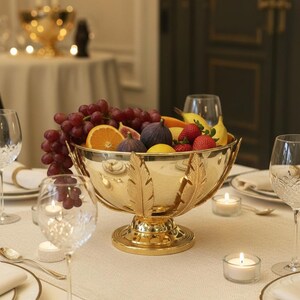 Available in gold and silver finishes, this bowl can be used not only for fruits but also as a sugar bowl, key holder, or decorative centerpiece. Each piece is polished by hand, ensuring a radiant finish and long-lasting shine.