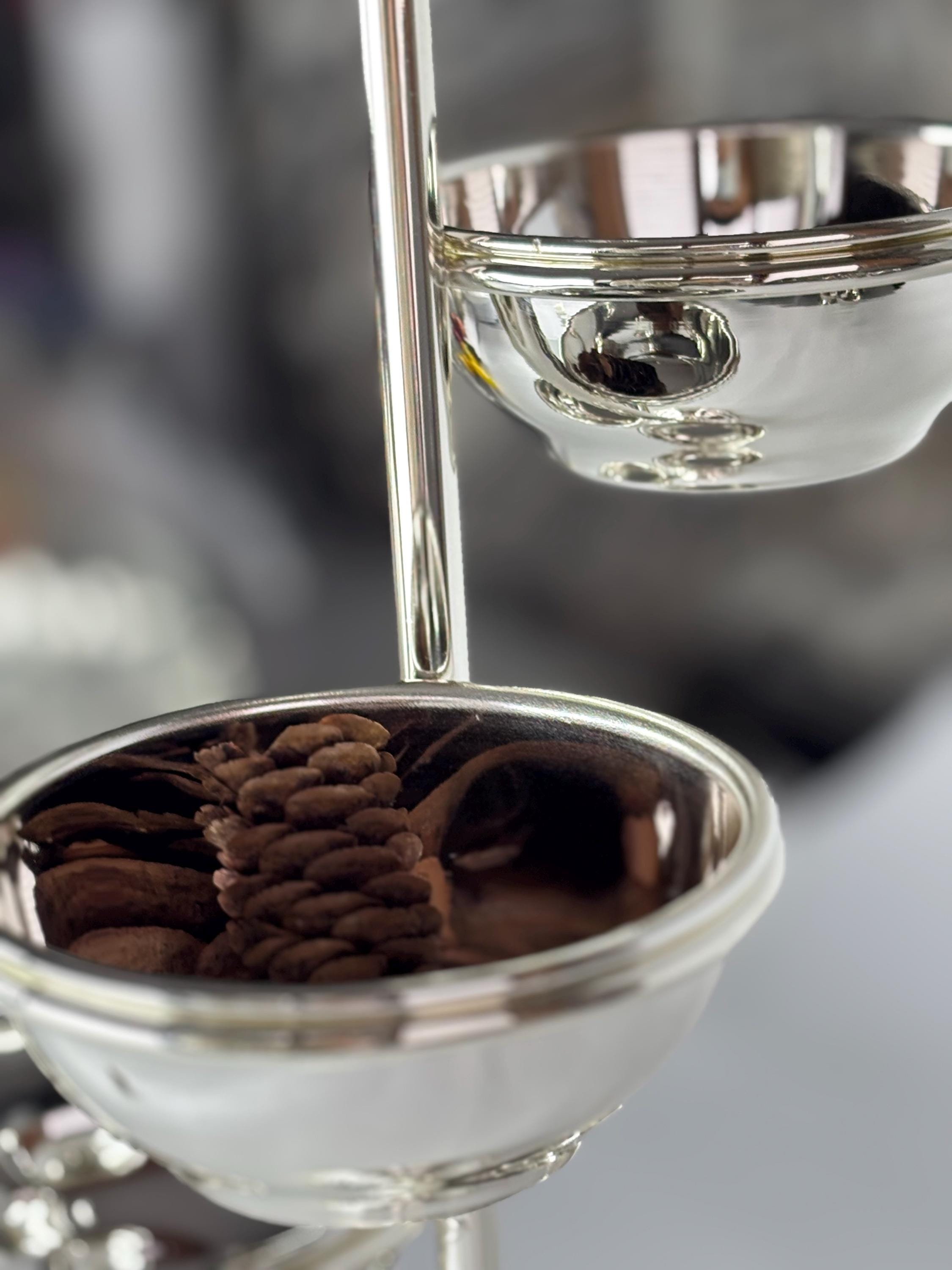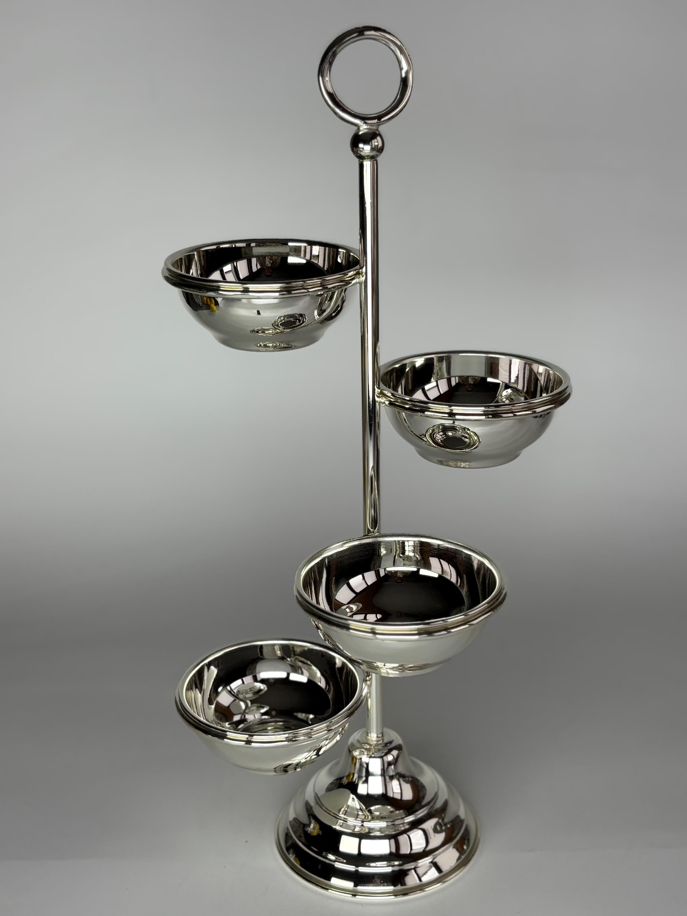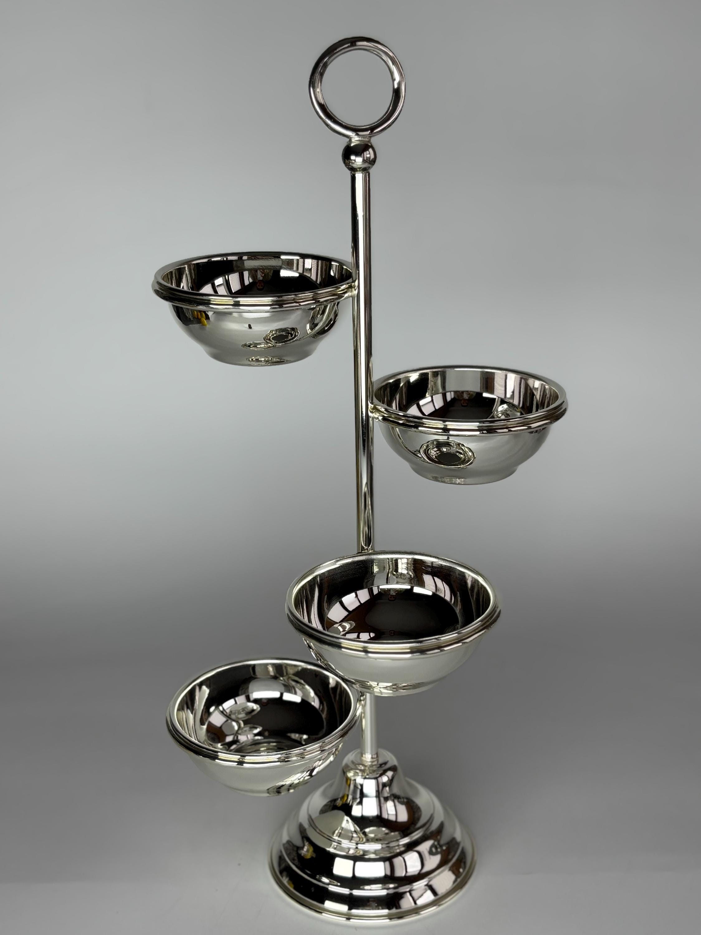 This elegant four-tier serving stand is crafted entirely from solid brass and plated with high-quality silver. Designed for versatility, each bowl is removable, allowing you to serve various treats such as jams, dried fruits, nuts, desserts, or appetizers.