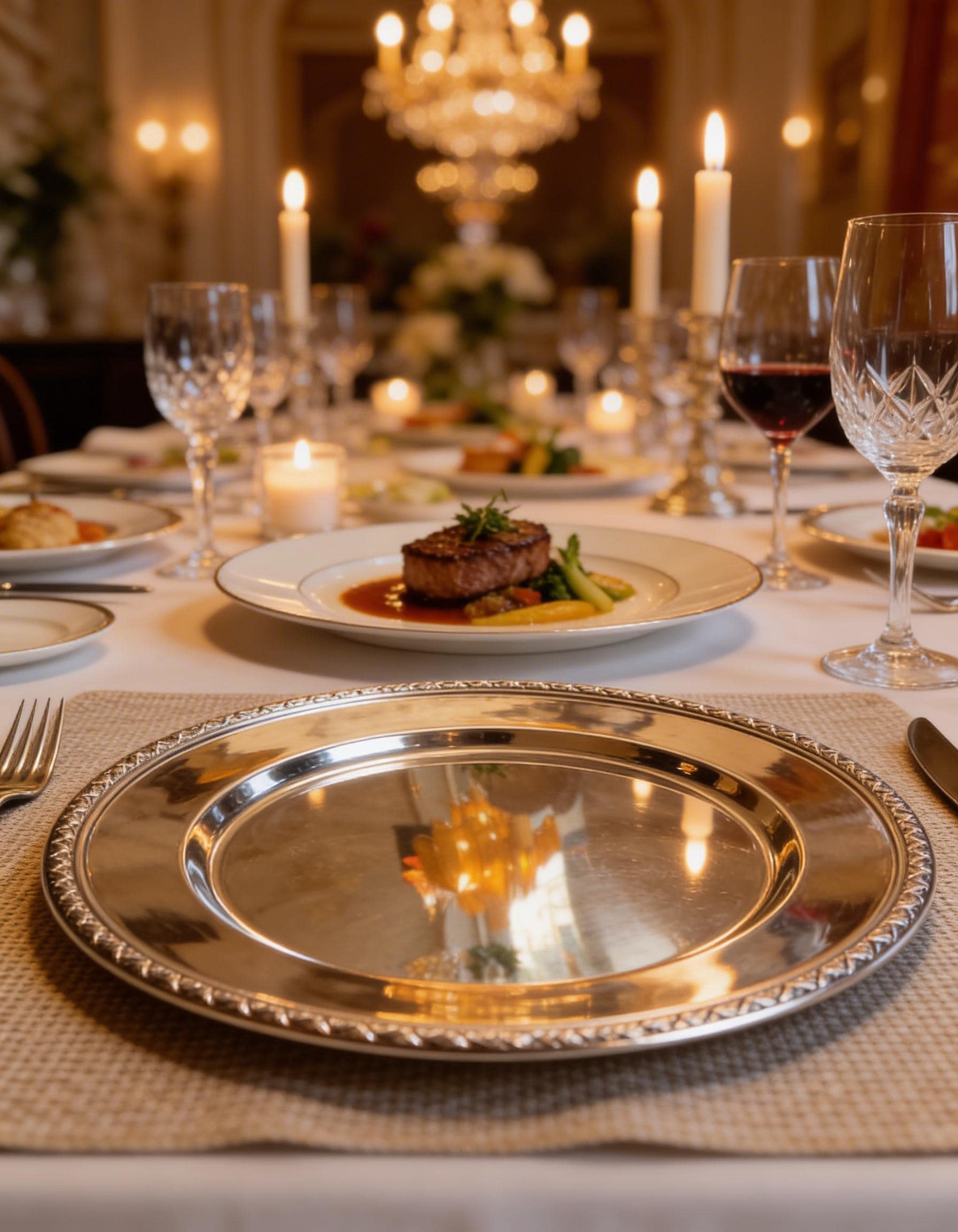 This handmade brass charger plate adds a refined and luxurious touch to any dining table. Its ornate rim and mirror-like silver plated surface make it a standout piece for both daily table settings and special occasions. It can be used as a placemat, decorative charger plate or an elegant serving tray for desserts and snacks.