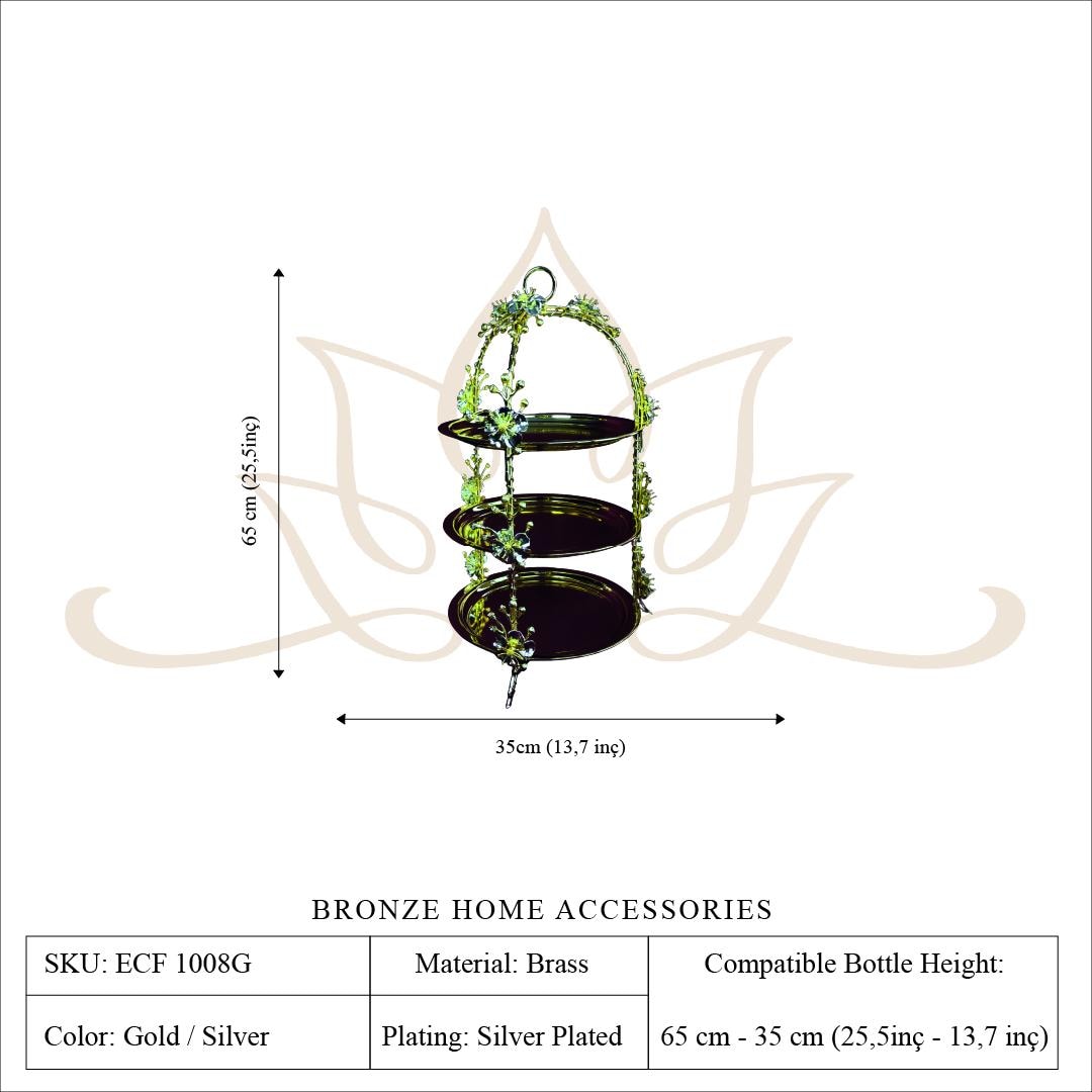 This handmade brass three tier serving stand is designed to elevate table styling with a refined and decorative presence. Delicate floral details frame each tier, creating a graceful balance between functionality and ornamental design. Crafted with artisanal techniques, this piece reflects timeless elegance and is ideal for luxury home entertaining under the Bronze Home Accessories identity.