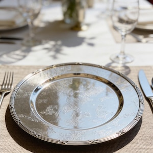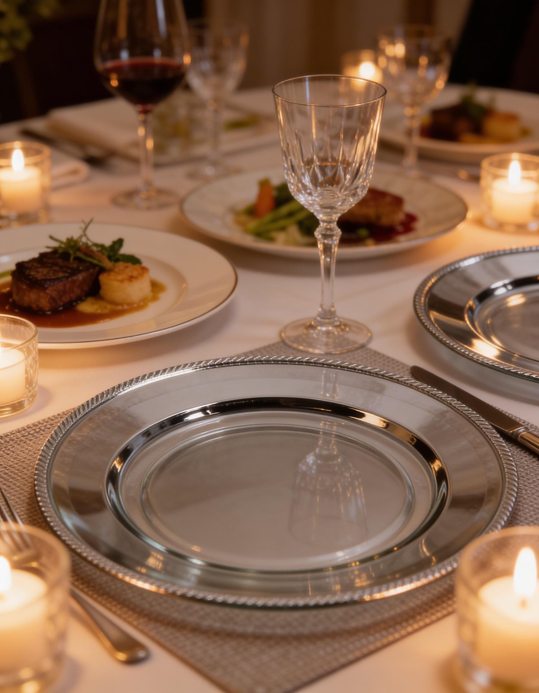 This handmade round charger plate is designed to elevate table settings with a refined and timeless touch. Its smooth reflective surface enhances the presentation of dinnerware while adding depth and elegance to the overall table arrangement. Crafted as a decorative base rather than a standard placemat, it brings a luxurious character to both everyday dining and special occasions.