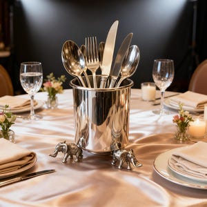 This handcrafted triple cutlery spoon holder silver is created to bring elegance, order, and confidence to your table presentation. Produced from premium quality brass and finished with refined gold or silver plating, this statement piece transforms simple kitchen organization into a luxurious styling element. Designed for people who enjoy hosting, styling their spaces, and presenting meals beautifully, this holder adds character while keeping everything perfectly arranged.